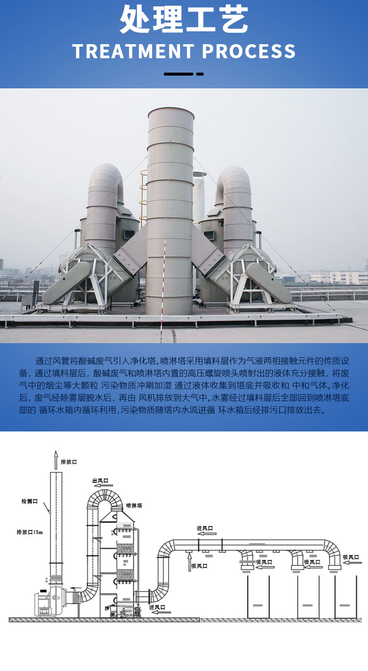 恒大兴业pp喷淋塔 酸碱废气处理设备 净化效果可达99% HD-30000